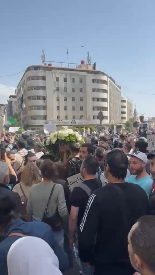 "الورد أبلغ من الصدام".. اعتصام في ساحة يوسف العظمة بدمشق