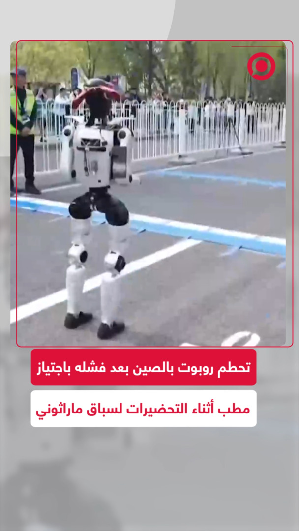 تحطم روبوت بعد فشله في اجتياز مطب صناعي أثناء التحضير لسباق ماراثوني ببكين